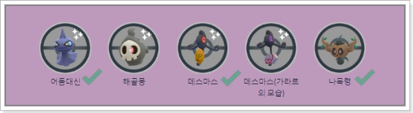 | 고스트 타입 포켓몬 5마리를 잡는다 | 데스마스(가라르의 모습) |